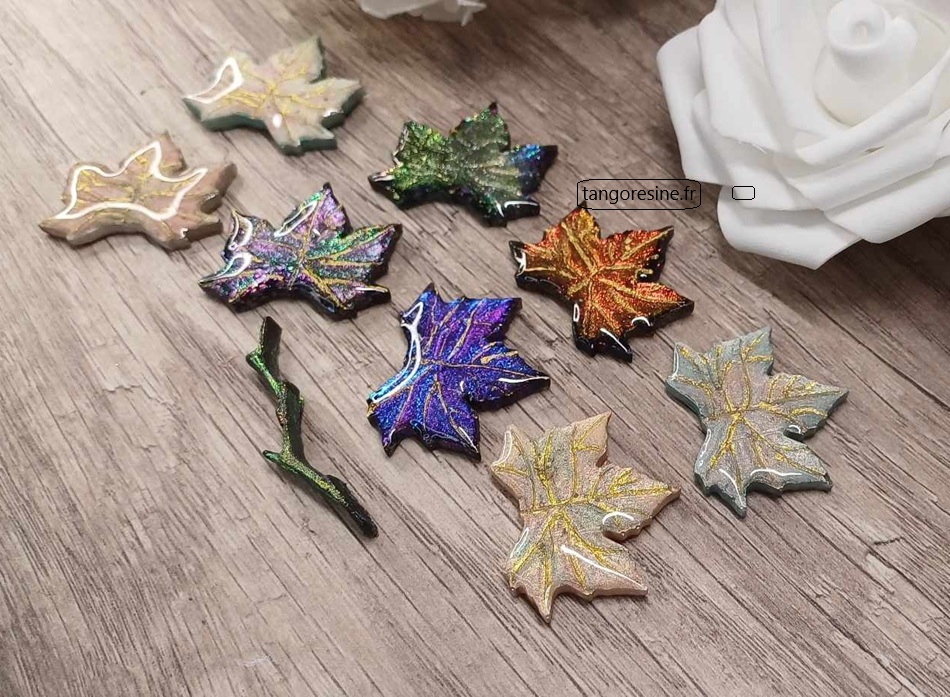 • 1 LOT : 4 feuilles vif résine époxy avec glaçage +1 branche.