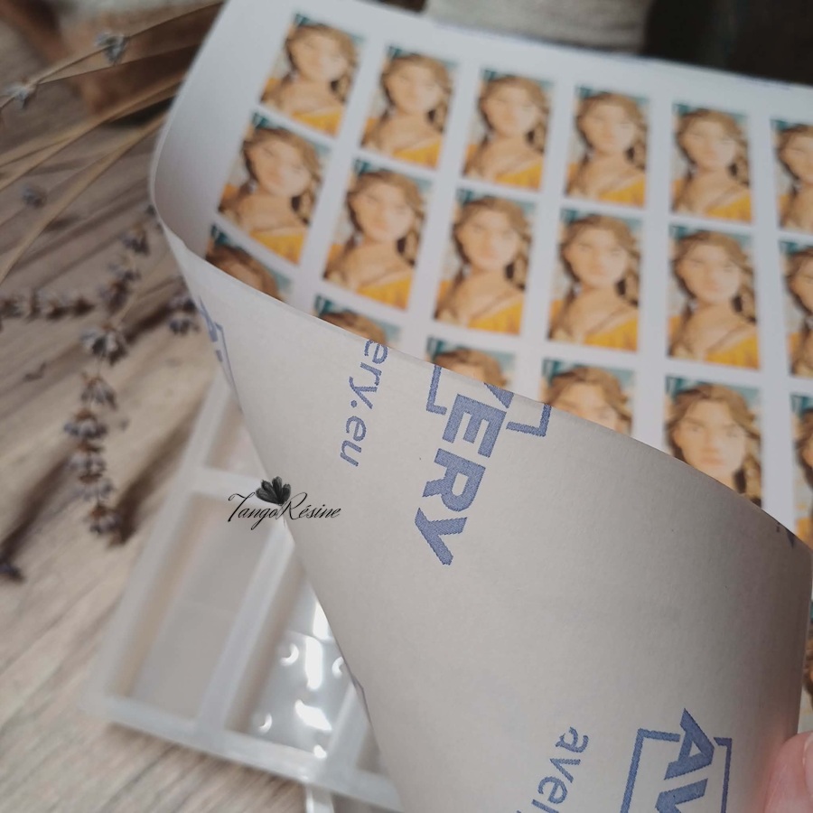 Le support autocollant facilite la pose dans le moule : l’étiquette adhère immédiatement, ne bouge plus et garantit un rendu propre et net après polymérisation. Chaque visuel est créé artisanalement sous Photoshop pour assurer une impression haute définition et des couleurs éclatantes.