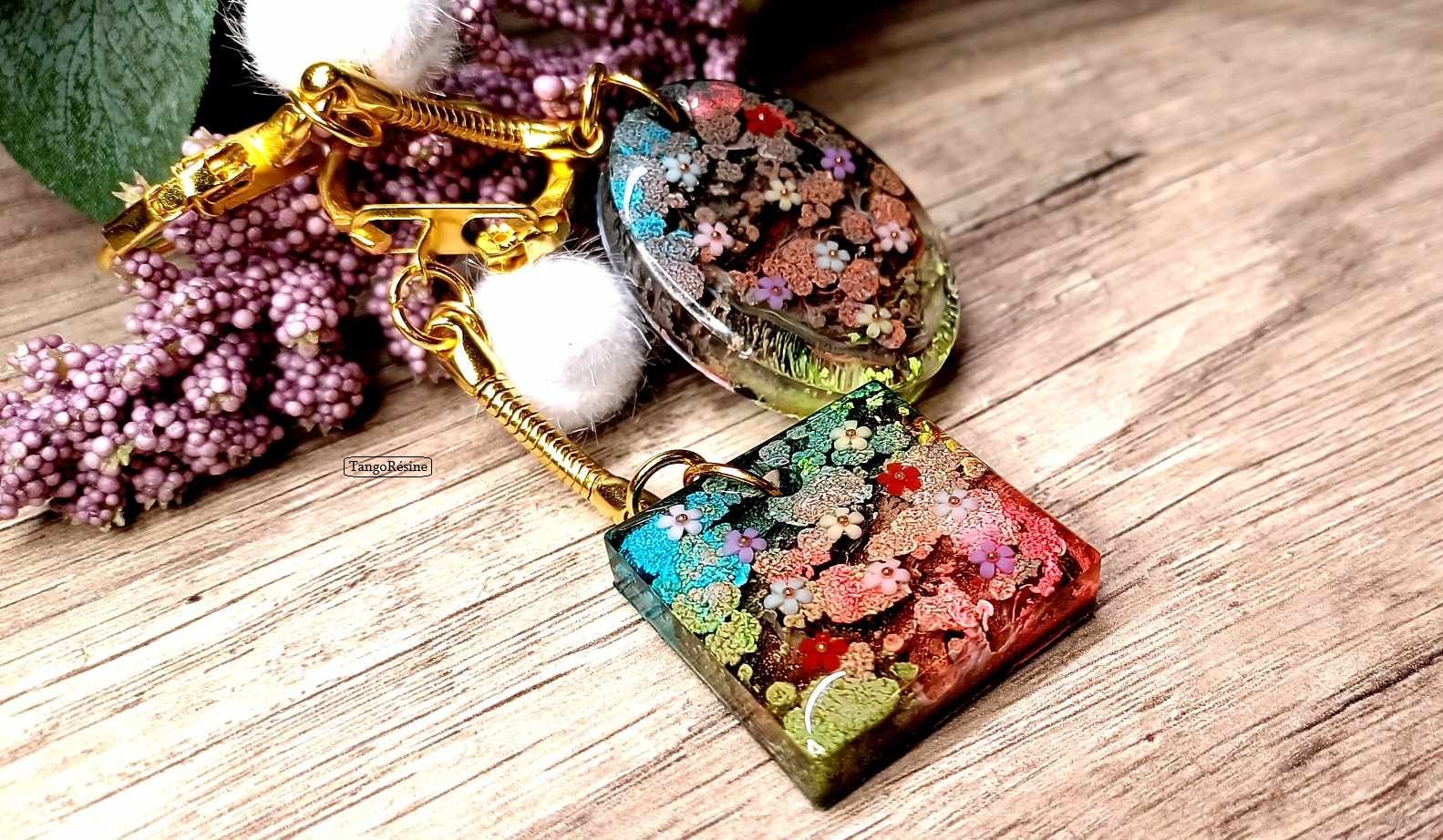 Ces magnifiques porte-clés ovale ou carré reflétant les fonds des marais avec des fleurs en surface fera des merveilles suspendu à vos clés de maison, voiture.