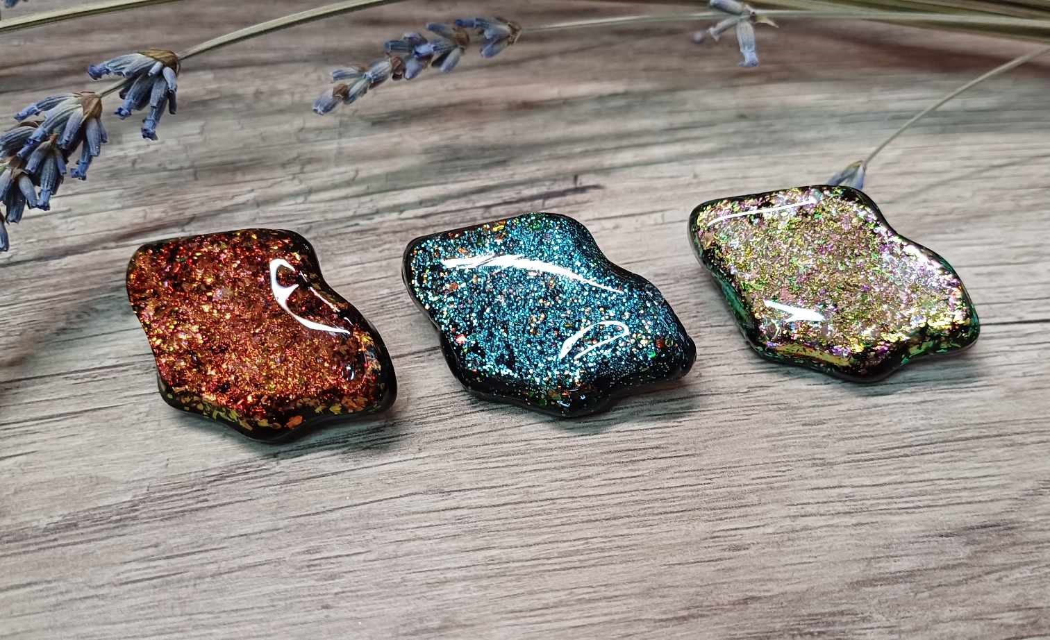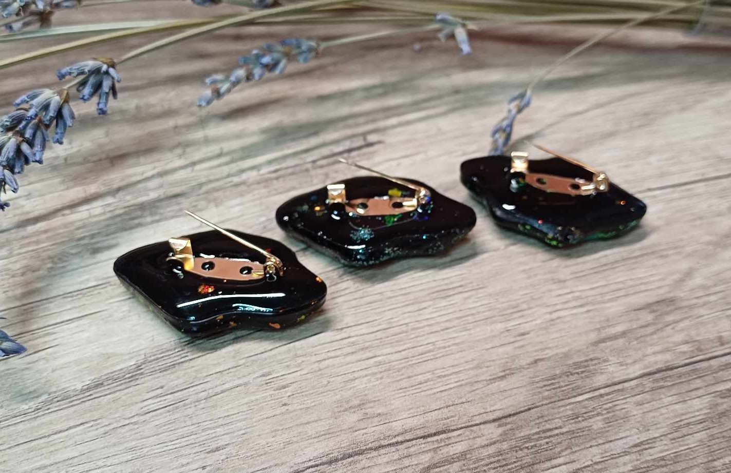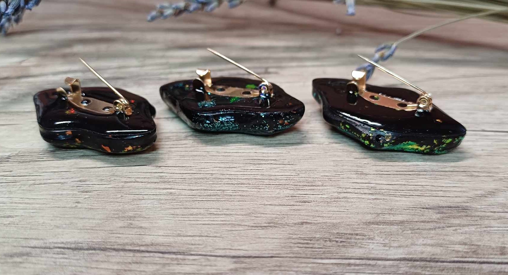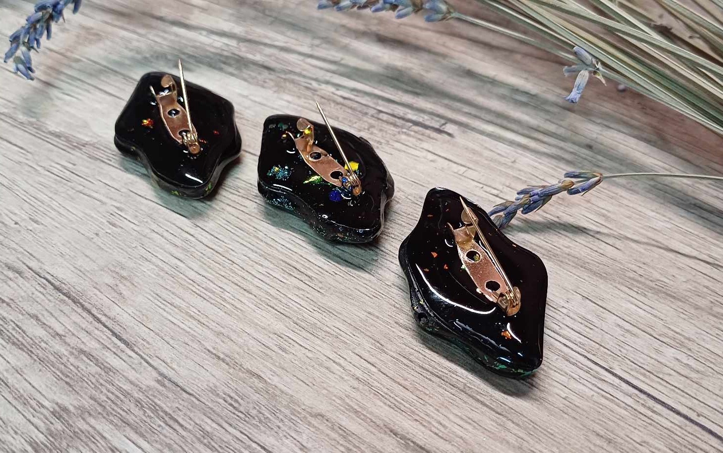 • Broche Star d’une nuit. Bleu, rouge et caméléon.