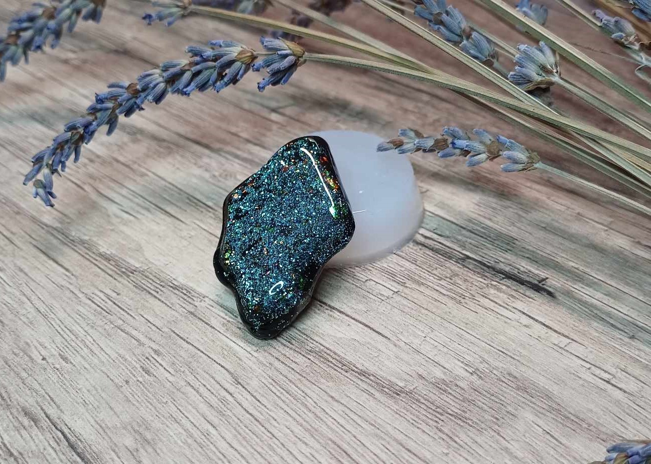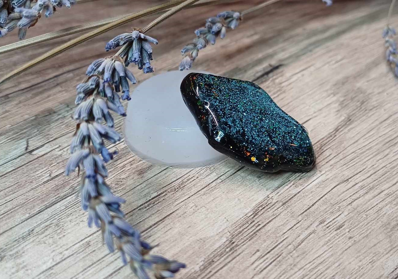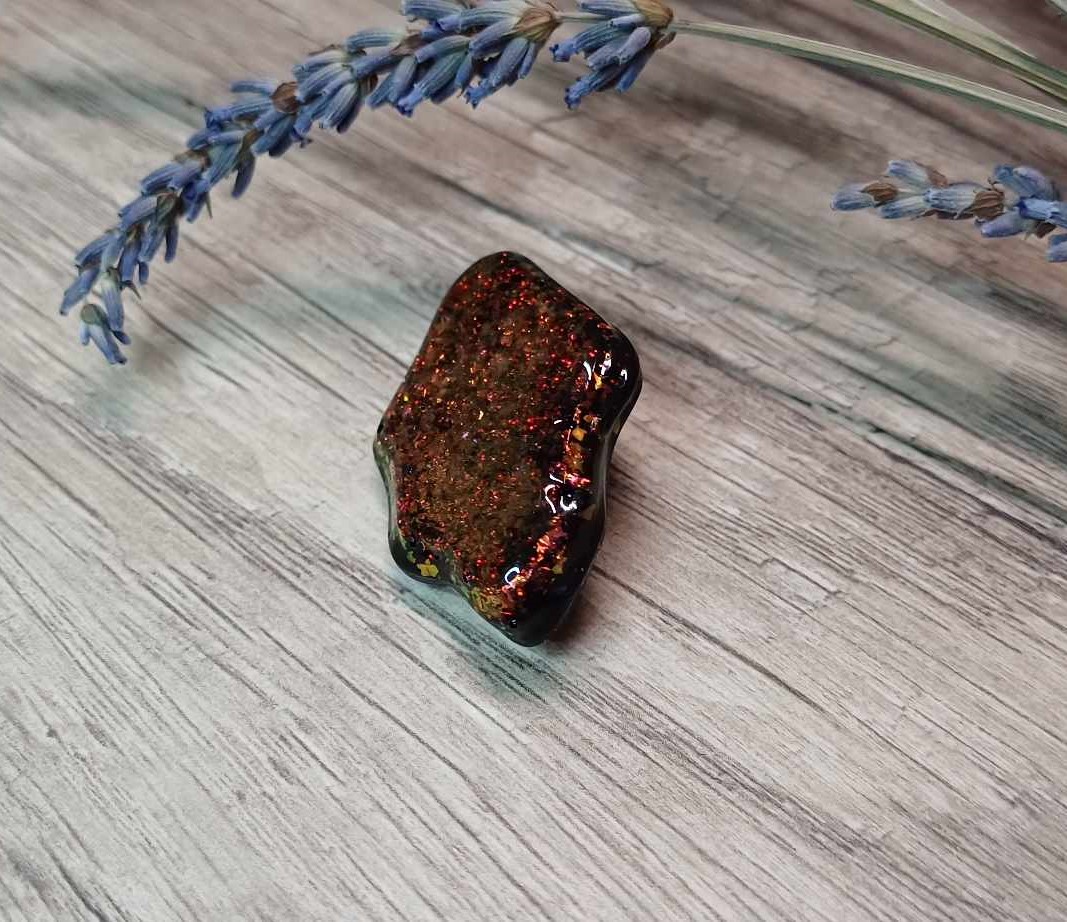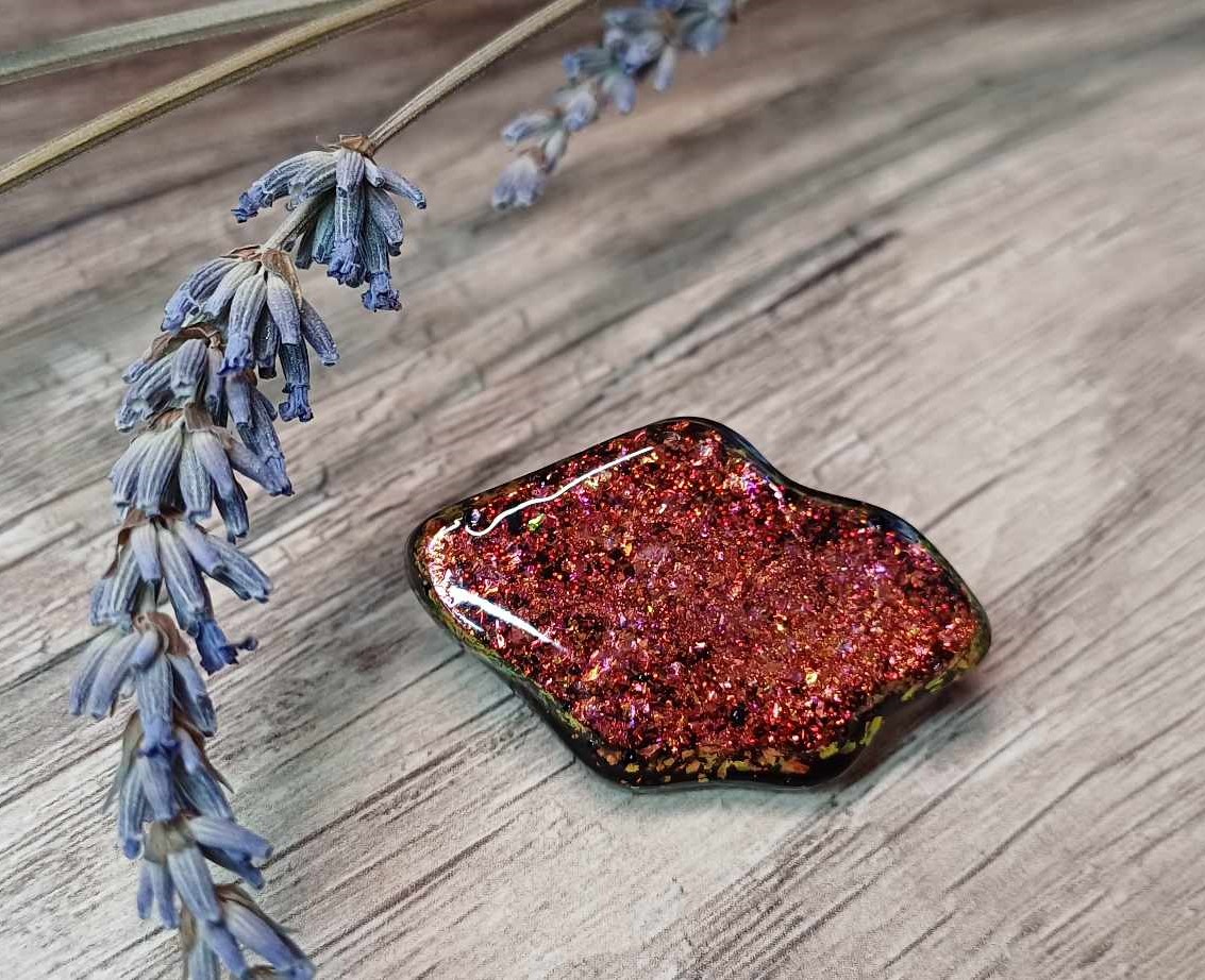 • Broche Star d’une nuit. Bleu, rouge et caméléon.
