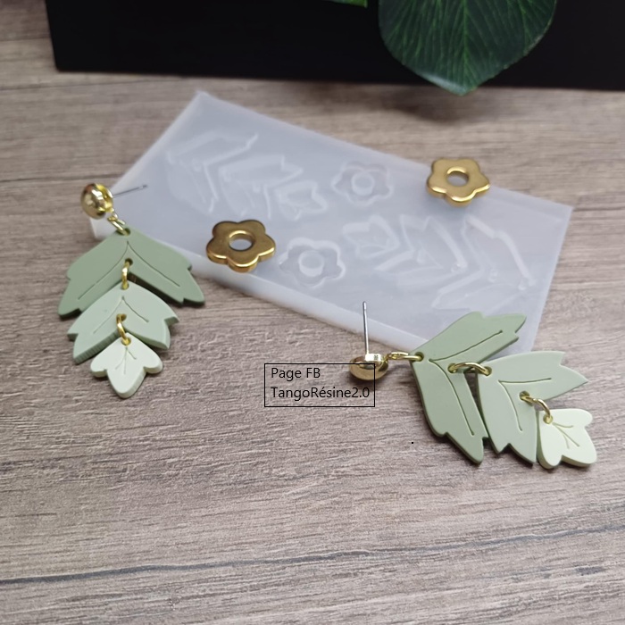 Moule en silicone boucles d’oreille feuilles tropicale + 2 jolies fleurs de 15mm idéales pour agrémenter vos créoles ou réaliser des bijoux comme ornements bracelets, pendentifs, porte-clés…